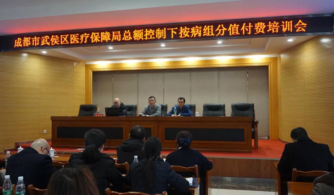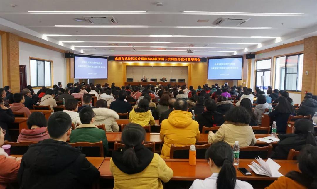 为更好地贯彻落实成都市医保局相关部署,推进成都市总额控制下按病组分值付费工作,2019年12月26日下午,武侯区医疗保障局特别邀请了成都市医疗保障事务中心邱桐老师开展“总额控制下按病组分值付费工作培训会”。会议于四川赫尔森康复医院学术厅举行,武侯区医疗保障局龙扬副局长、综合三科张智科长、医疗保障科孙书琦科长及武侯区各医疗机构代表约200人参与了本次培训。