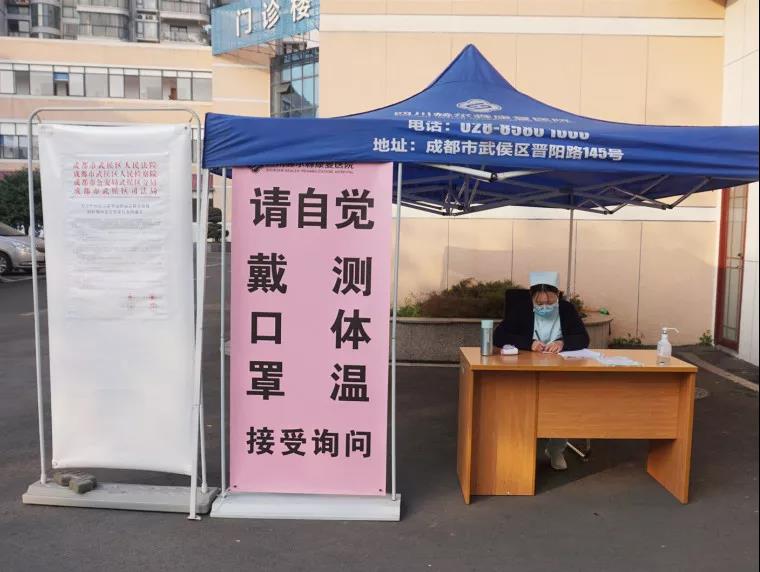结合成都市武侯区卫健局的要求,在短时间内完成了预检分诊,隔离发热门诊及普通门诊布置,并配备充足医护人员,24小时值班。对发热门诊工作人员的规范着装、保洁人员的医疗废物处理管理进行了培训,对防护物资进行了盘点和调配。为确保疫情可控、可防,严控院内人员流向。医院门口设置了体温检测点,对来院人员做到“一测三问”(测体温、问症状、问居住地、问有无接触高危人群),严防死守,不漏一人。消毒、防护、医疗废物处理等医院感染防控措施到位。