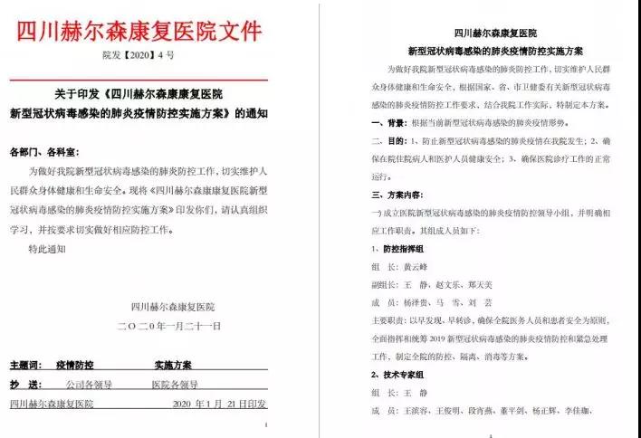 医院积极响应成都市卫健委、武侯区卫健局和四川省医院协会社会办医分会关于医、技、护自愿者的招募,四川赫尔森康复医院医生 4 人、护士 2 人主动请战。