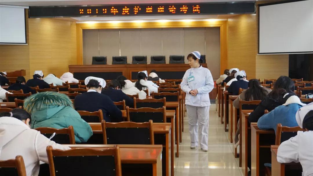 12月27日,于医院学术厅进行理论考核。考核现场,参考护士准备充分、专心致志、奋笔疾书。监考人员认真负责,恪尽职守,整个考场肃穆庄严。