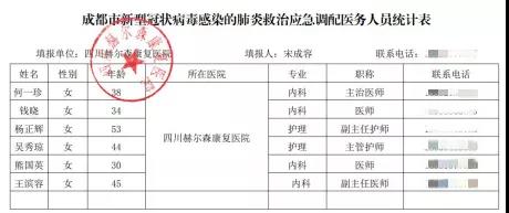 医院积极响应成都市卫健委、武侯区卫健局和四川省医院协会社会办医分会关于医、技、护自愿者的招募,四川赫尔森康复医院从高年资的副主任医师、副主任护师到青年的医护骨干纷纷志愿报名,目前已有医生 4 人、护士 2 人主动请战。我们不希望灾难的降临,但也绝不惧怕它的到来!赫尔森人不畏困难,勇往直前,充分展示出了“有德、有术、有情、有义”的医务工作者形象。保卫生命,抗击疫情,这是我们的决心,也是我们的信心。