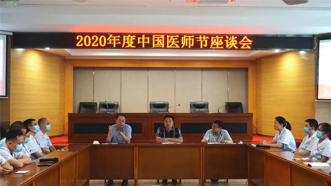 2020年8月19日是第三个“中国医师节”,为充分表达对医师群体的高度重视和亲切关怀,我院特召开“中国医师节”专题座谈会,深入了解我院一线医务工作者的工作现状、个人需求和对医院发展、管理等方面的意见建议。鹤发双鬓的老医师、风华正茂的中年医师、朝气蓬勃的青年医师等三十余位科室代表身着圣洁白衣悉数到场,黄云峰院长、王静副院长、赵文乐副院长等领导出席。