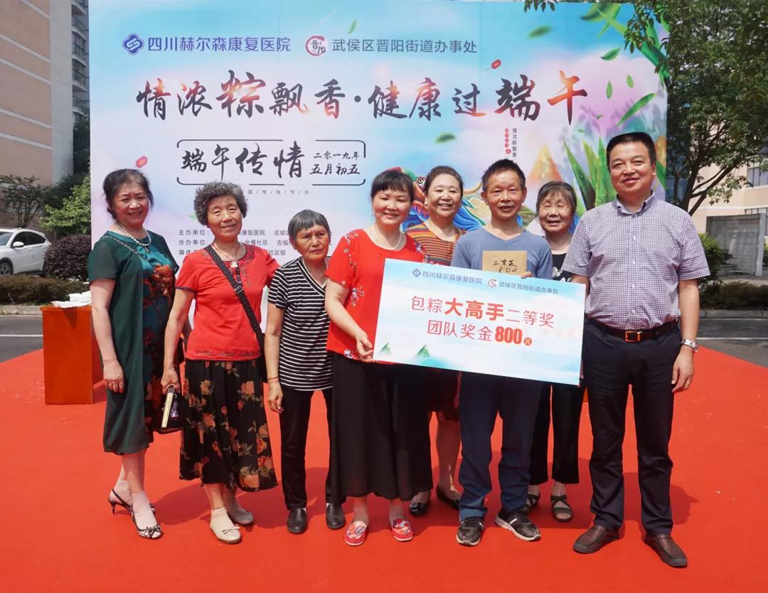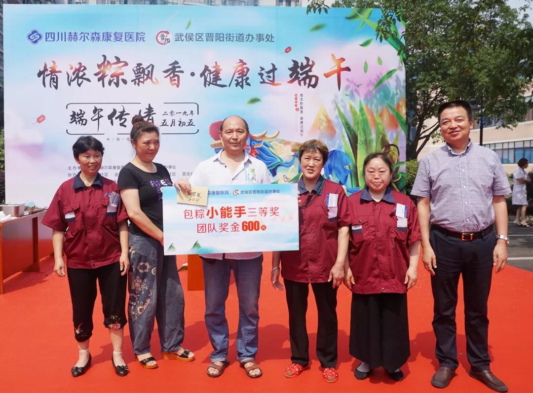 六只参赛队伍均取得了不错的成绩,PK出了“包粽快手王”、“包粽大高手”及“包粽小能手”,获得了由四川赫尔森康复医院提供的端午奖金,节日的气氛弥漫在医院每个角落及每个人的心中。